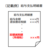 給与・賞与にて減税を行った場合には給与明細書へ「定額減税額(所得税)×××円」または「定額減税×××円」の表示を行う必要があります。